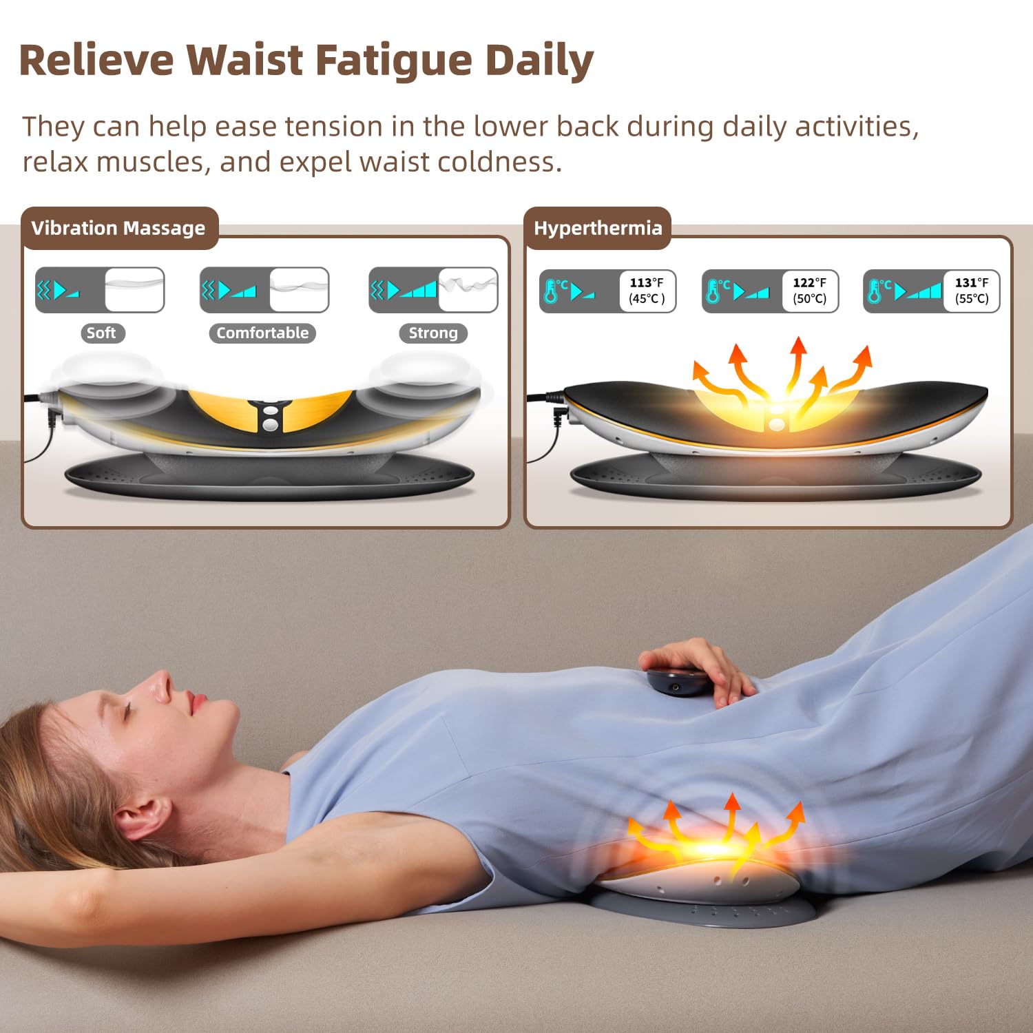 This electric lumbar traction device delivers professional-grade physical therapy at home with traction, heat therapy, electrotherapy, and vibration functions. Dual intelligent airbags provide dynamic traction to reduce disc pressure and improve flexibility, while customizable settings let you personalize your treatment. Features 3-level heat and vibration plus 20-level electrotherapy to enhance circulation and ease muscle tension. Ideal for work-related back pain and daily strain. Start with lowest settings and consult your doctor before use, especially if you have spinal conditions, diabetes, heart disease, or recent spine surgery.